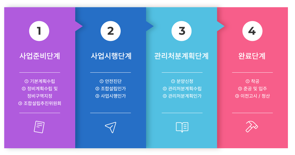 주거환경을 계획적으로 정비하고 노후화된 건축물을 관리처분계획에 따라 효율적으로 주택 및 부대·복리시설을 건설하여 도시환경을 개선,